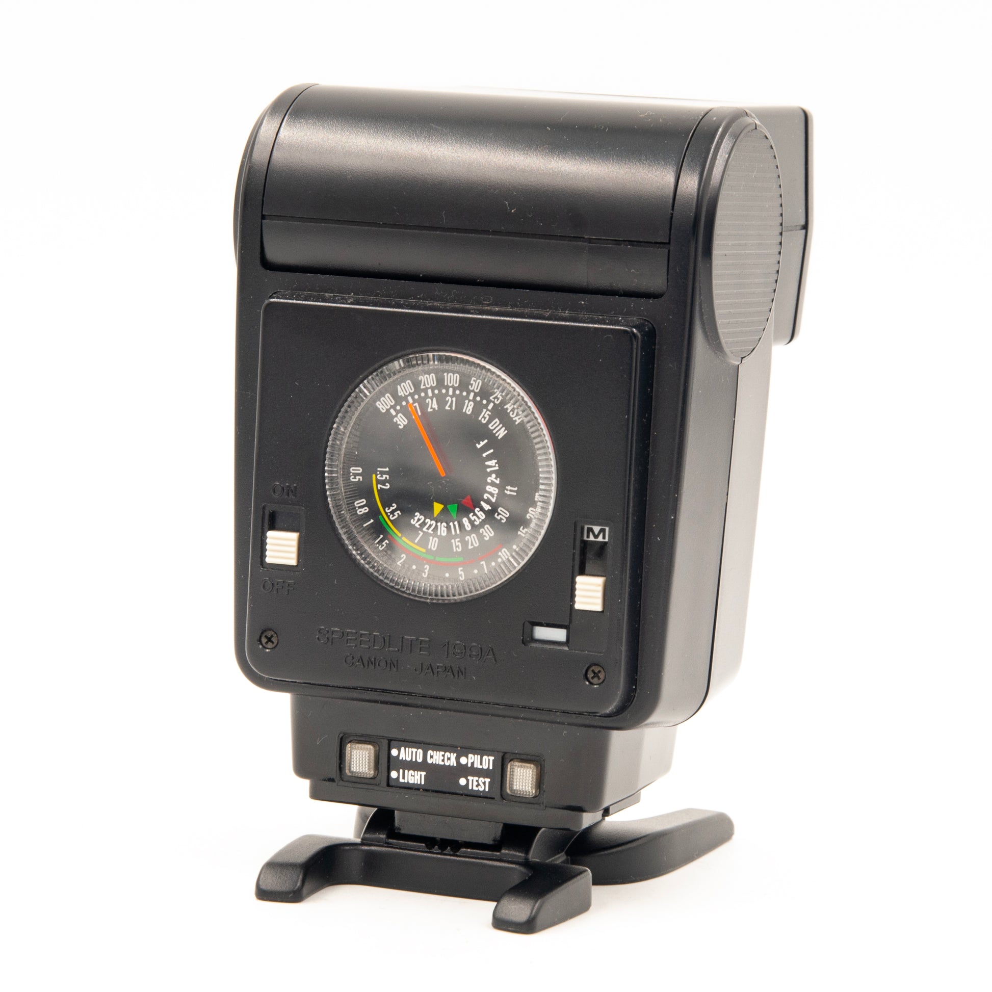The Canon Speedlite 199A is a feature-packed flash designed for use with Canon A-series cameras, such as the Canon AE-1, AE-1 Program, and A-1. With a pivoting flash head for bounce-flash, three different strengths of automatic flash modes, and a fast flash recycling speed, the Canon Speedlite 199A is a perfect flash for any situation.