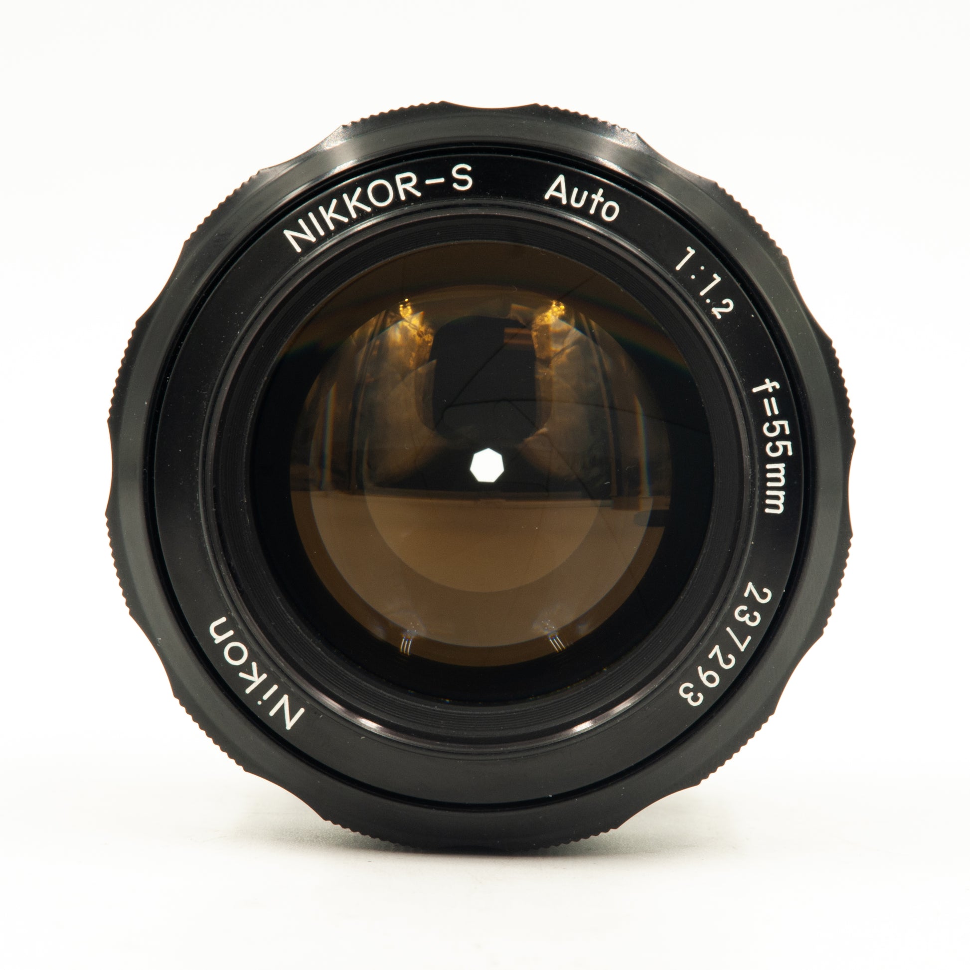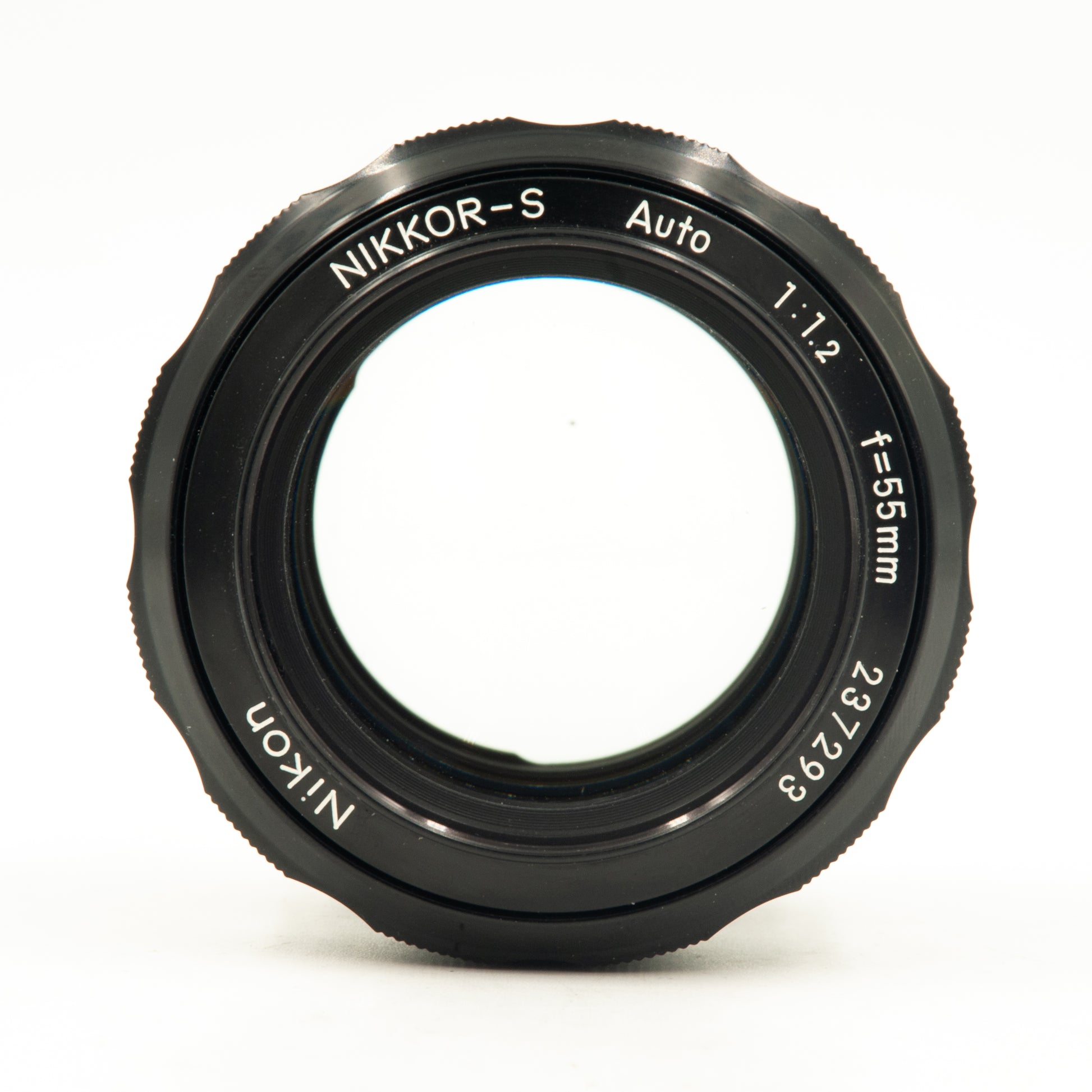 Includes Nikkor 55mm f1.2 lens, front and rear caps.