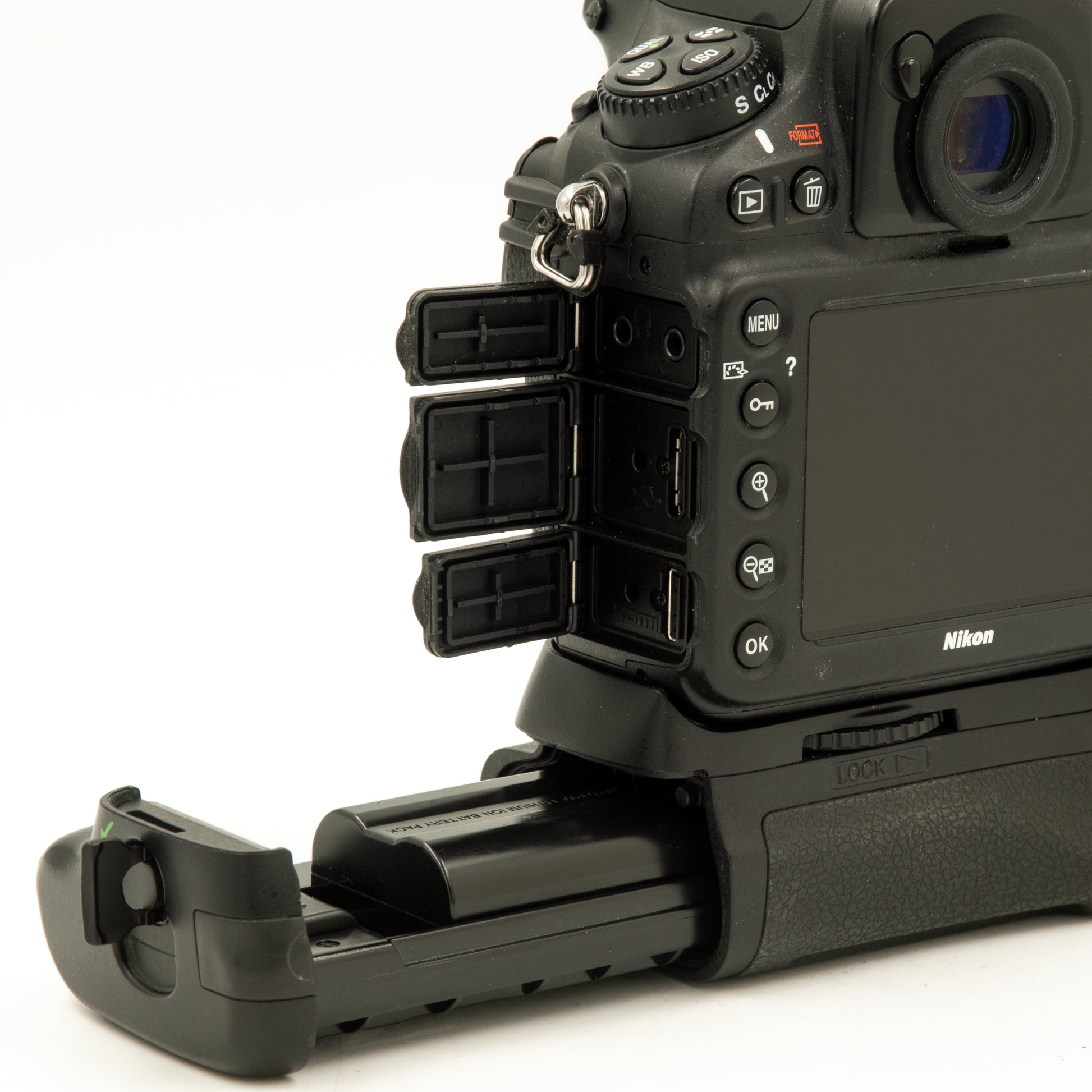 The MB-D12 grip improves the ergonomics of the camera, especially for vertical grip, and adds extra controls. Plus, it boosts the continuous shooting up to 6 frames per second, and allows for an additional EN-EL15, or eight AA batteries to be used.